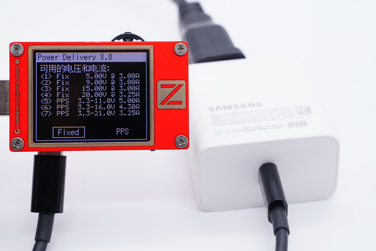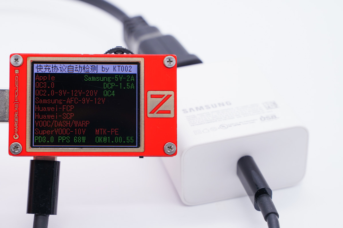 协议方面使用ChargerLAB的POWER-Z KT002读取充电器的快充协议,实测支持PD、PPS、QC4.0快充协议。