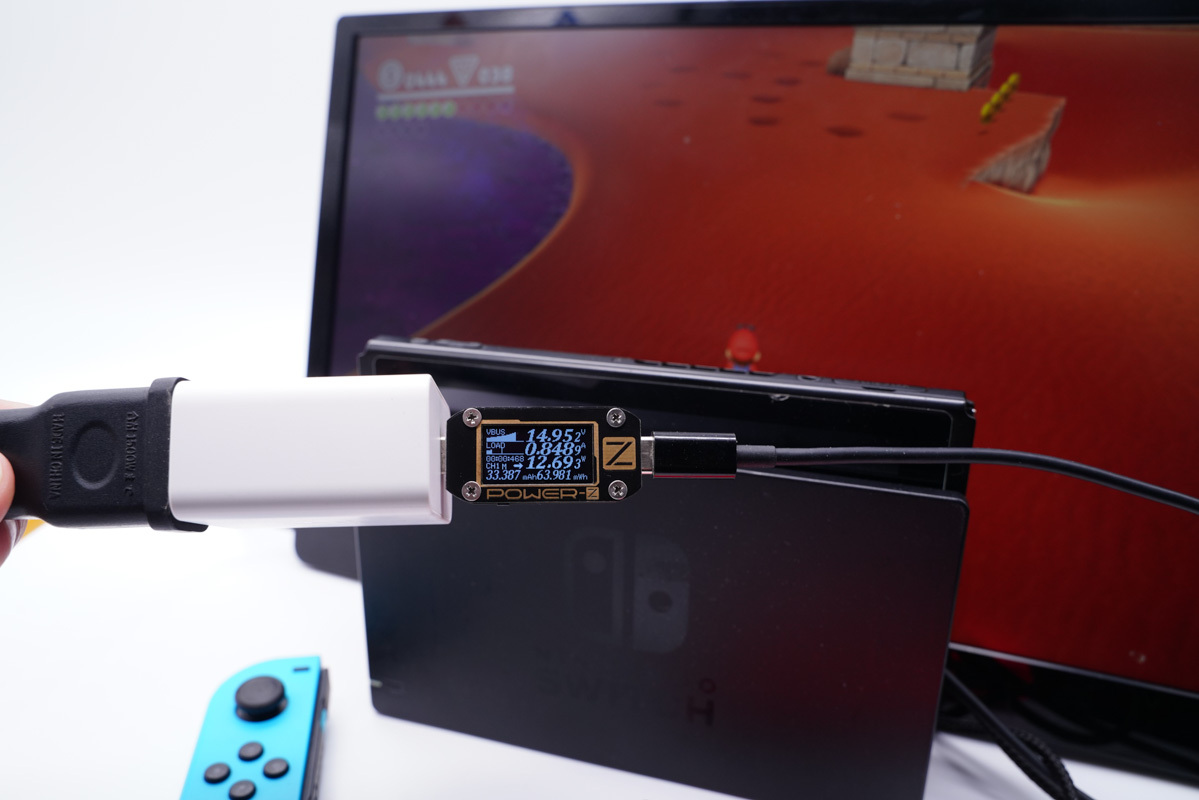 充电器支持15V3A PD快充输出档位,实测可以成功激活Switch的底座TV模式,充电器输出15V电压。