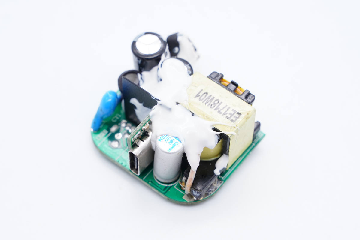电容、变压器等元器件打胶加固,初次级间设有隔离板。