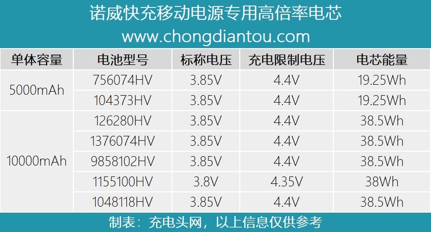 赣州诺威新能源推出了多款USB PD快充移动电源专用电芯,具有4.4V高截止电压,属于高压平台电池,搭配开关升压,相比4.2V电池,可输出更多的能量,更加适合小体积移动电源使用。最近风靡的iPhone磁吸移动电源,是在移动电源的外壳内部加入无线充电线圈,对移动电源内置电池的密度也有了更高的要求。