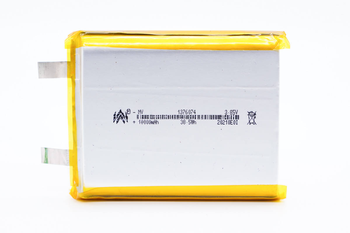 诺威1376074电池,长74.5mm,宽60mm,厚度为13.7mm,容量为10000mAh,均压3.85V,充电限制电压4.4V。支持0.8C快充和1.2C放电,满足22.5W双向快充需求,可用于单节10000mAh快充移动电源。