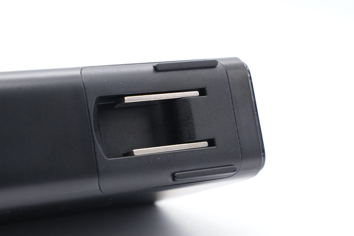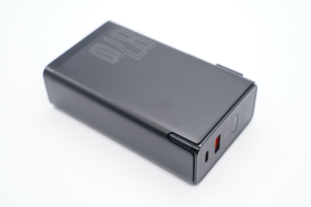 此次Baseus倍思87W能量堆的插脚部分也经过了全新的设计,首先自然是折叠造型,其次取出插脚的步骤也不再是从上拨出,而是由下向外拨出,这样做的好处就是在搭配墙插使用时不会很容易掉出来。
