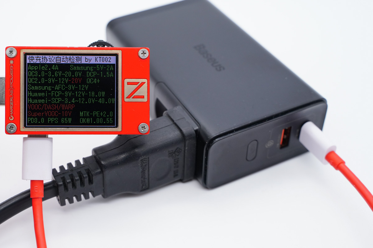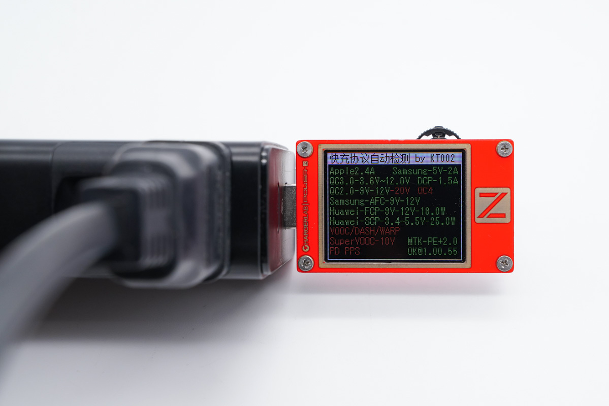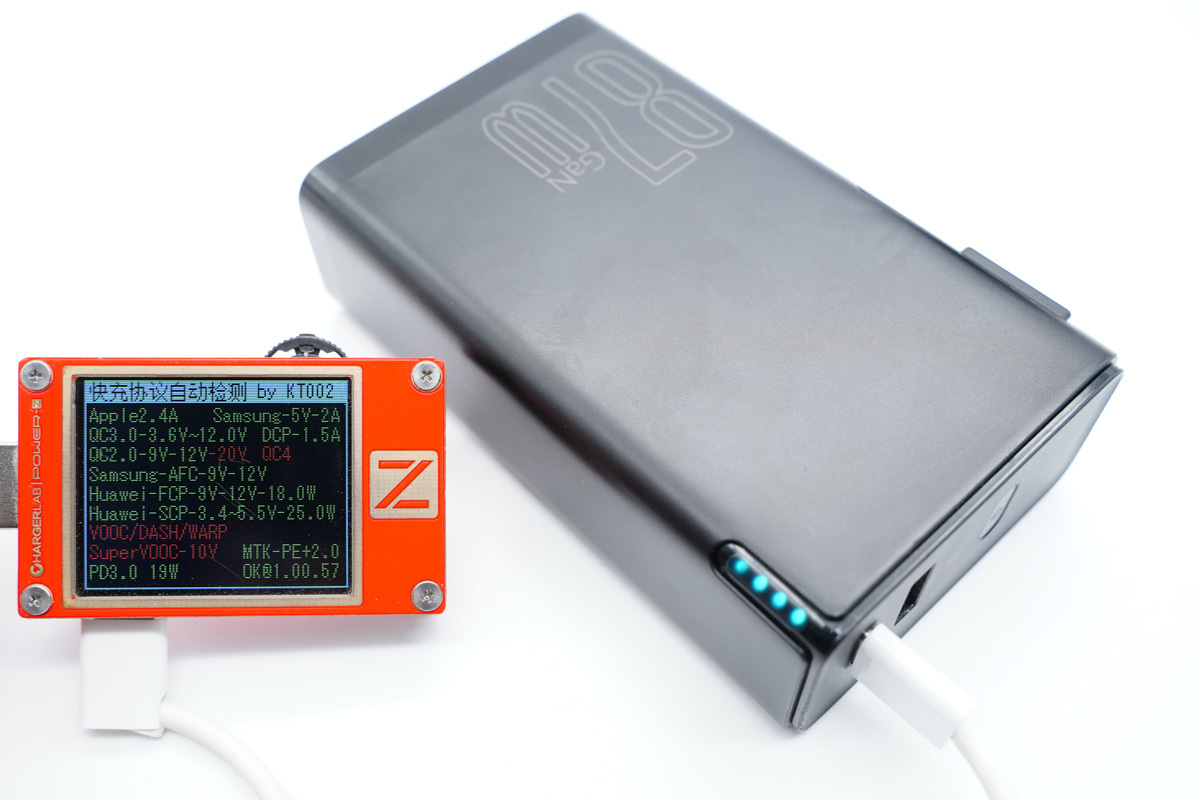 协议方面使用POWER-Z KT002读取USB-C接口的快充协议,实测充电宝模式下USB-C的协议支持情况和充电器模式下相同。