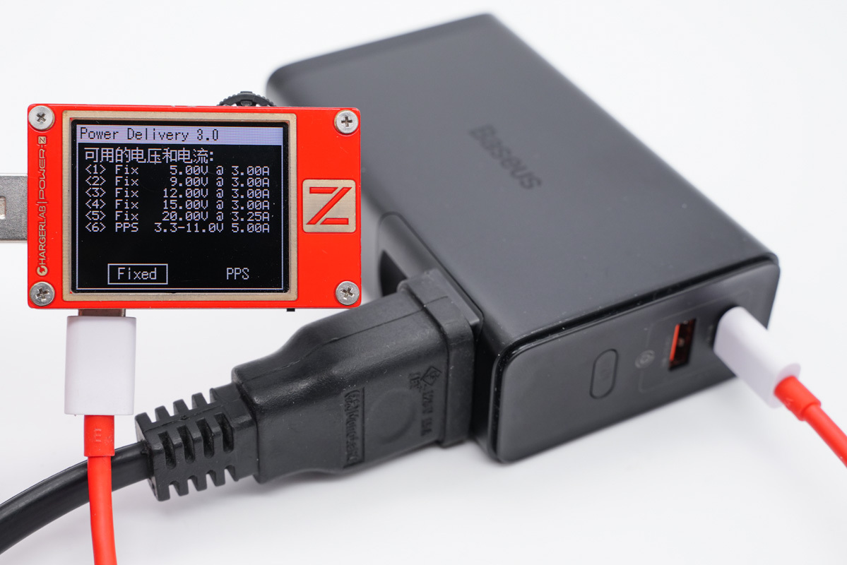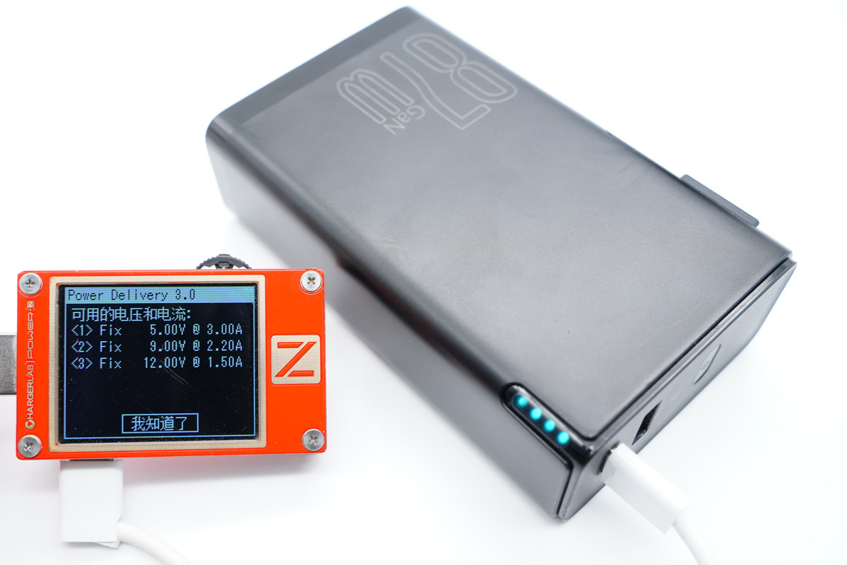 当充电器模式下USB-C触发PD快充输出时可以提供5V3A、9V3A、12V3A、15V3A、20V3.25A五个全电压档位,以及3.3-11V5A一组PPS快充档位。