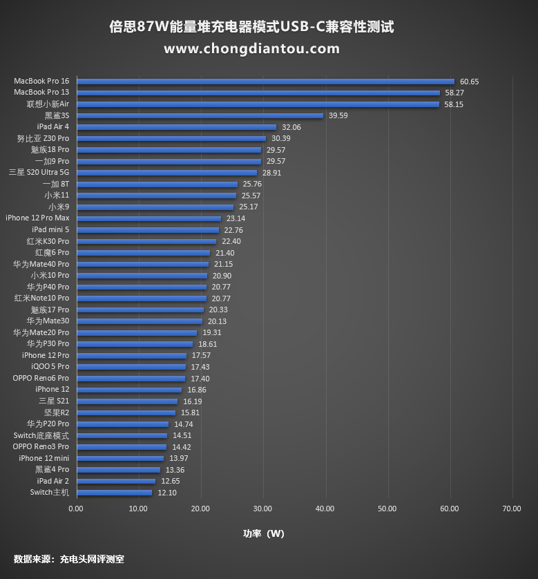 为MacBook Pro可以提供60.64W的PD快充功率,这几乎已经达到了最大输出功率。
