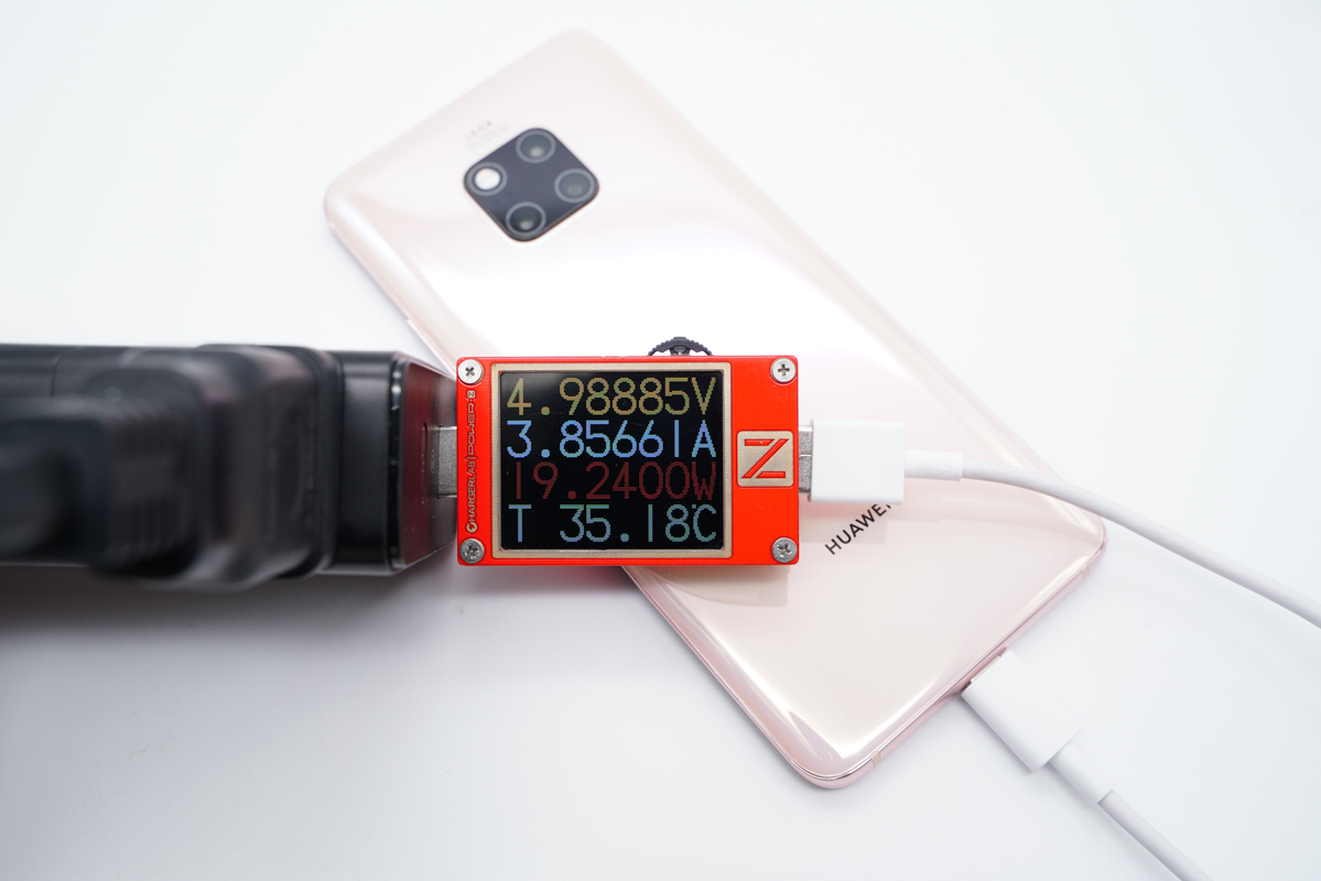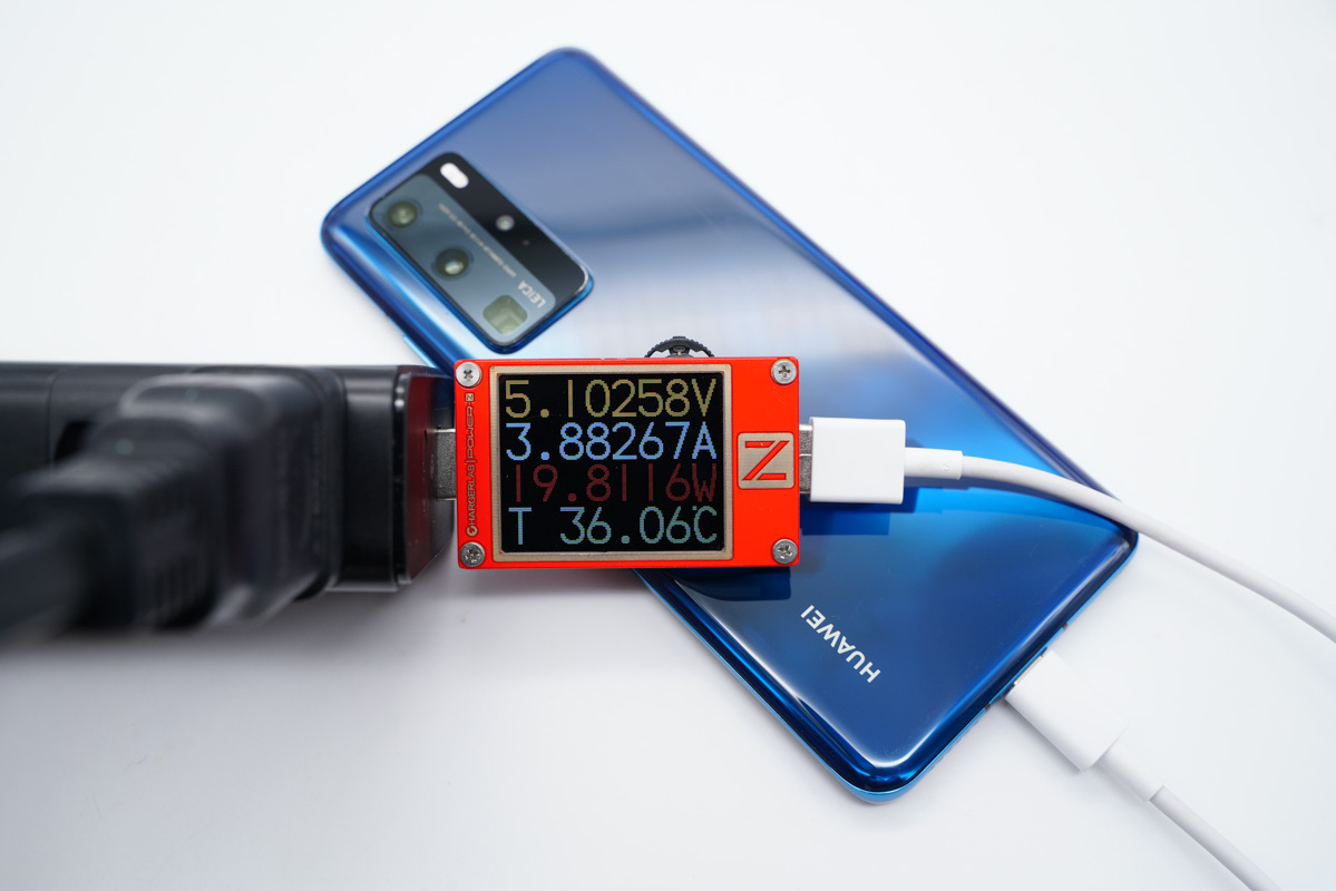 USB-A这里支持华为SCP快充协议,为华为P40 Pro充电可以提供低压大电流的快充,功率为19.81W。