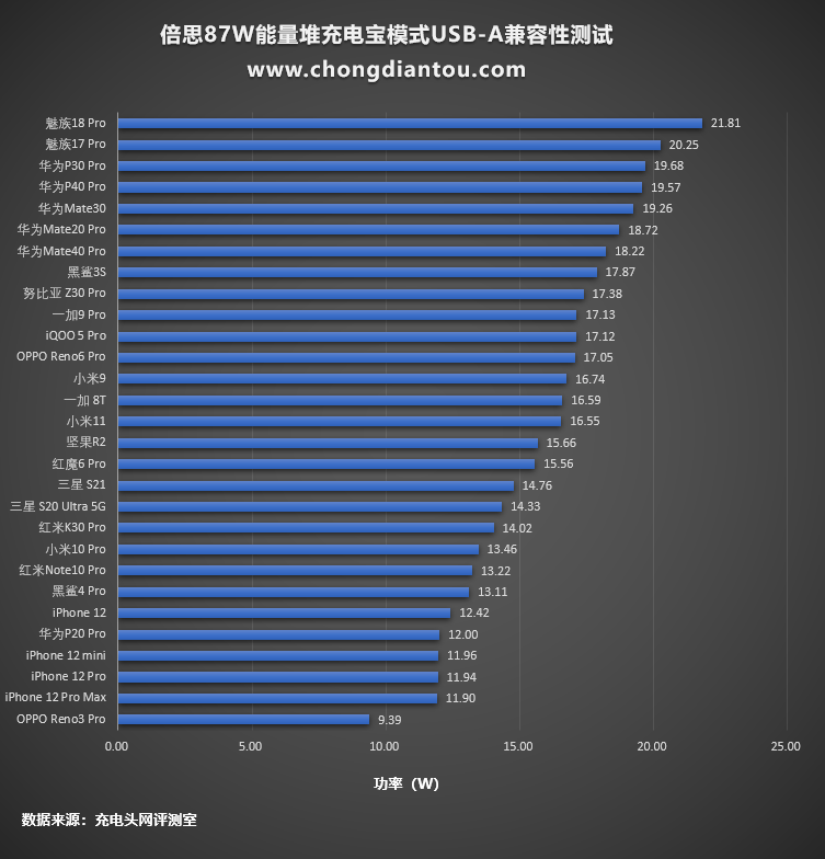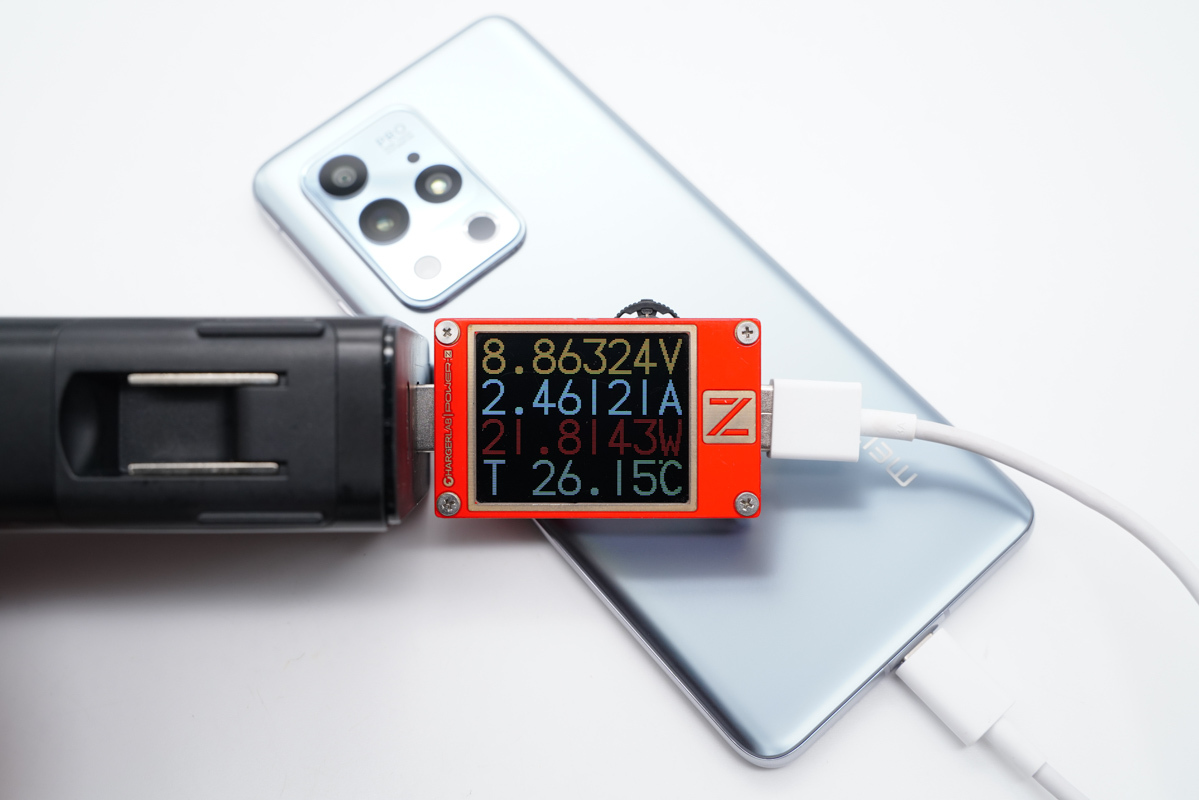 USB-A这里可以为魅族18 Pro提供近22W的快充功率,表现不错。