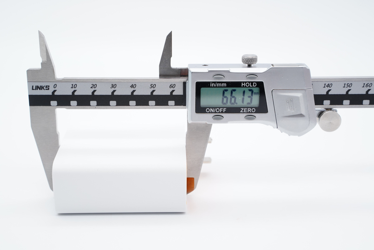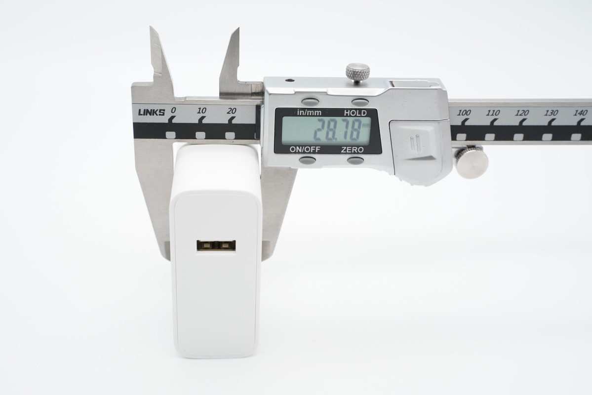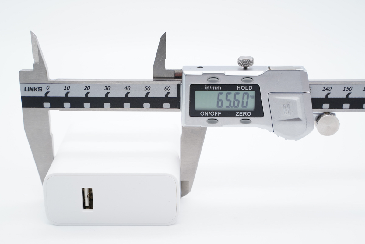 使用卡尺实测充电器的长度约为66.13mm(不含插脚)。