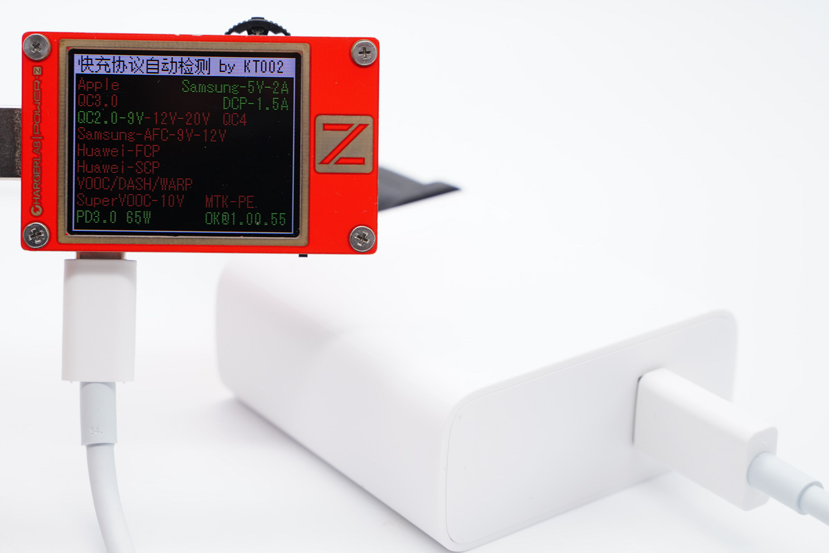 使用ChargerLAB的POWER-Z KT002读取充电器的快充协议,实测支持QC2.0快充。