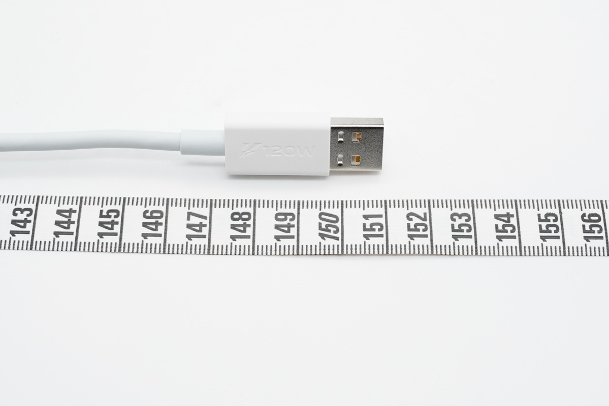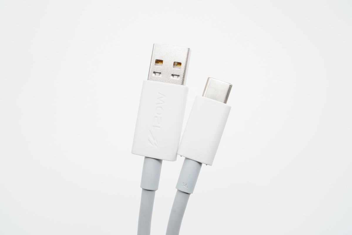 附带的快充线材类型为A to C,USB-A的端子头上面还可以看到120W的标识,也说明了线材支持120W快充。