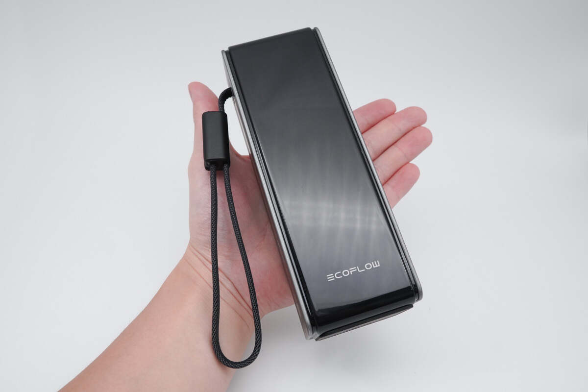 倍思22.5W 10000mAh数显快充移动电源采用自动线设计,自带USB-C线可当提绳且有收纳槽,配备1A1C双快充口,机身小巧圆润(尺寸...