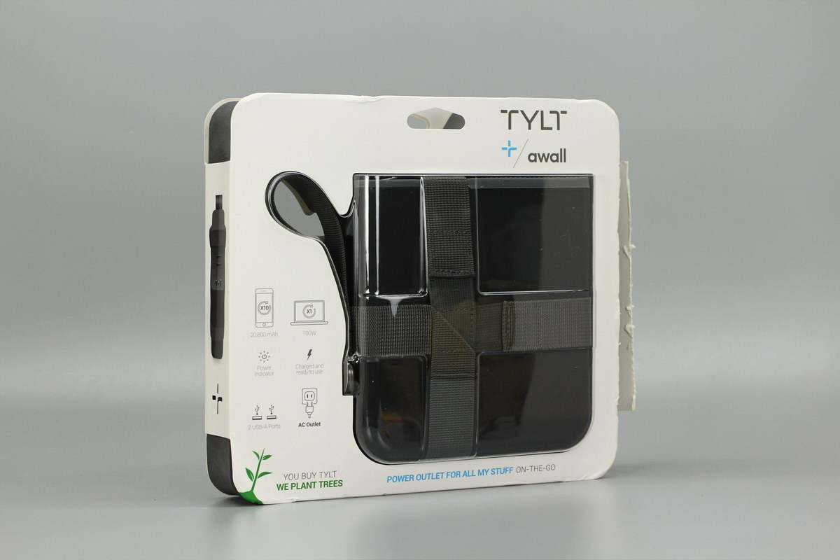 包装盒正面印有TYLT品牌等,正面橱窗式设计,可以看到户外电源实体。