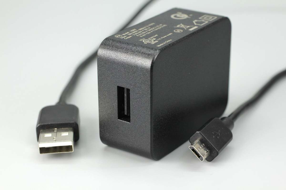 附带充电器采用USB-A输出接口,线缆是USB-A to Micro USB线。