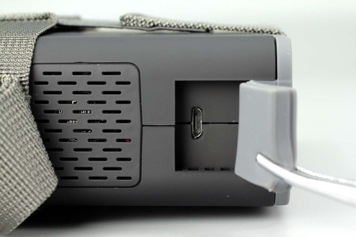 打开胶垫,机身一侧设有Micro USB输入接口。