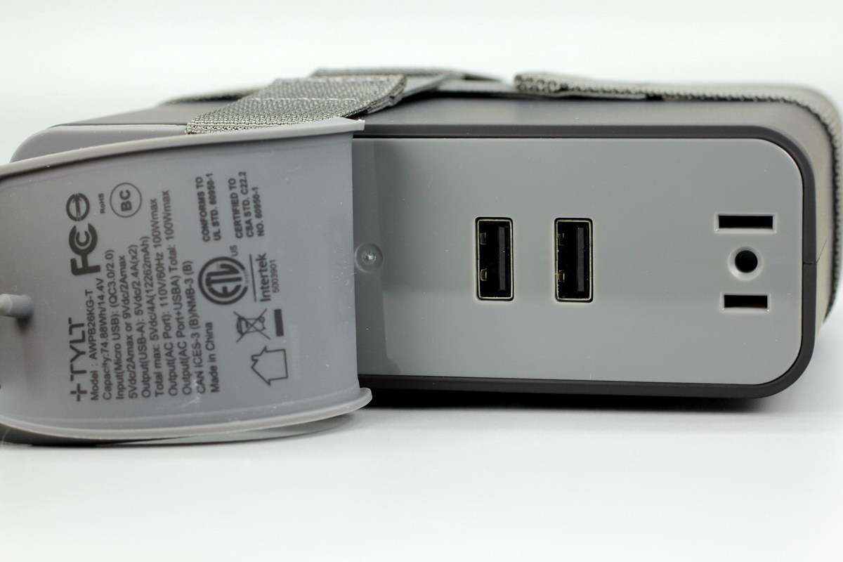 TYLT这款户外电源采用方块机身造型设计,边角过渡圆润,顶部设有胶垫防尘。和常见的户外电源相比,虽然性能没那么强悍,但胜在保证一般供电前提下,可以让用户轻装出行,机身外套两条布带也是为了方便用户携带而设计。