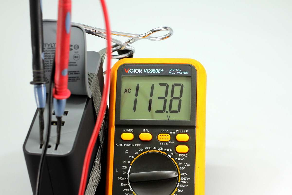 测得AC插口输出电压为113.8V。