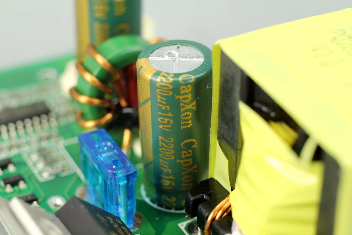 输入滤波电解电容来自丰宾,规格为16V 2200μF。充电头网了解到,丰宾电容还被华为、绿联、ANKER、小米、vivo、惠普等知名品牌的百余款快充产品采用。
