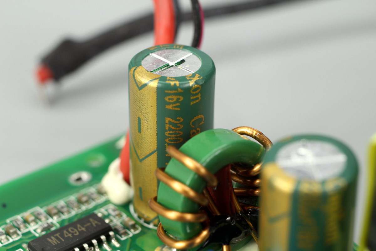 另一颗电容也是来自丰宾,规格一样。两颗电容间还有一颗滤波电感。