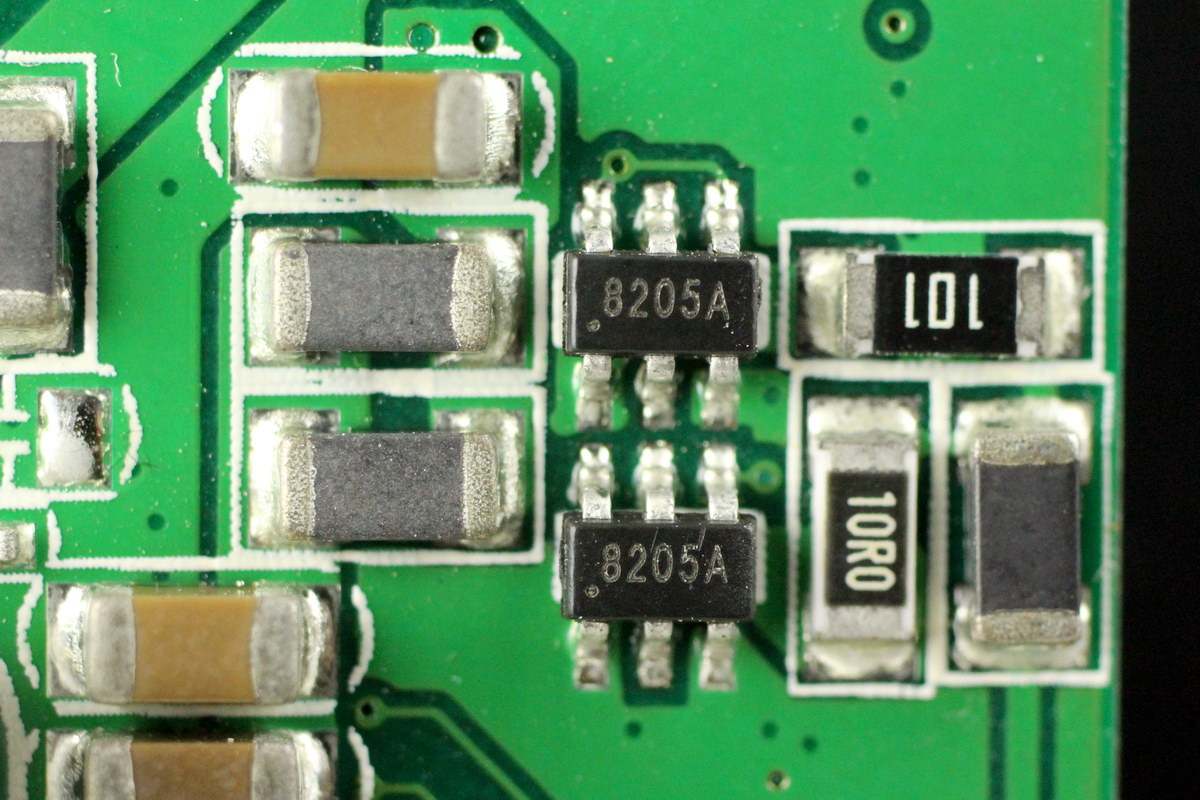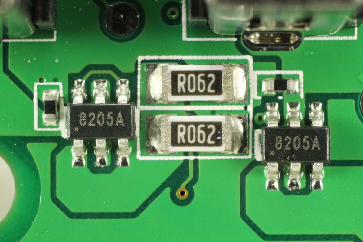 两颗8205A MOS管,分别用于两个USB口输出保护。