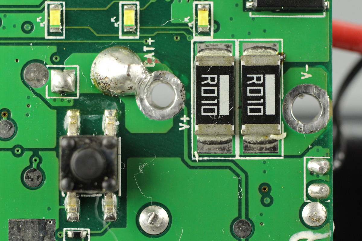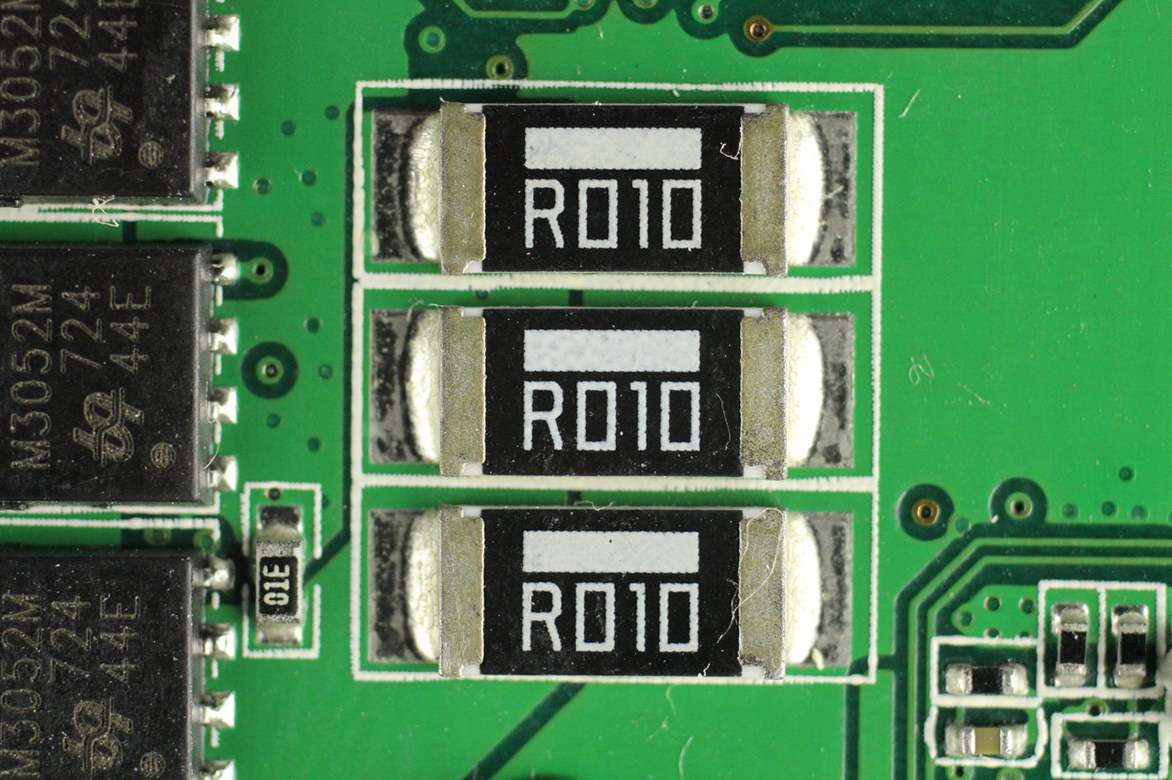 三颗R010取样电阻并联。