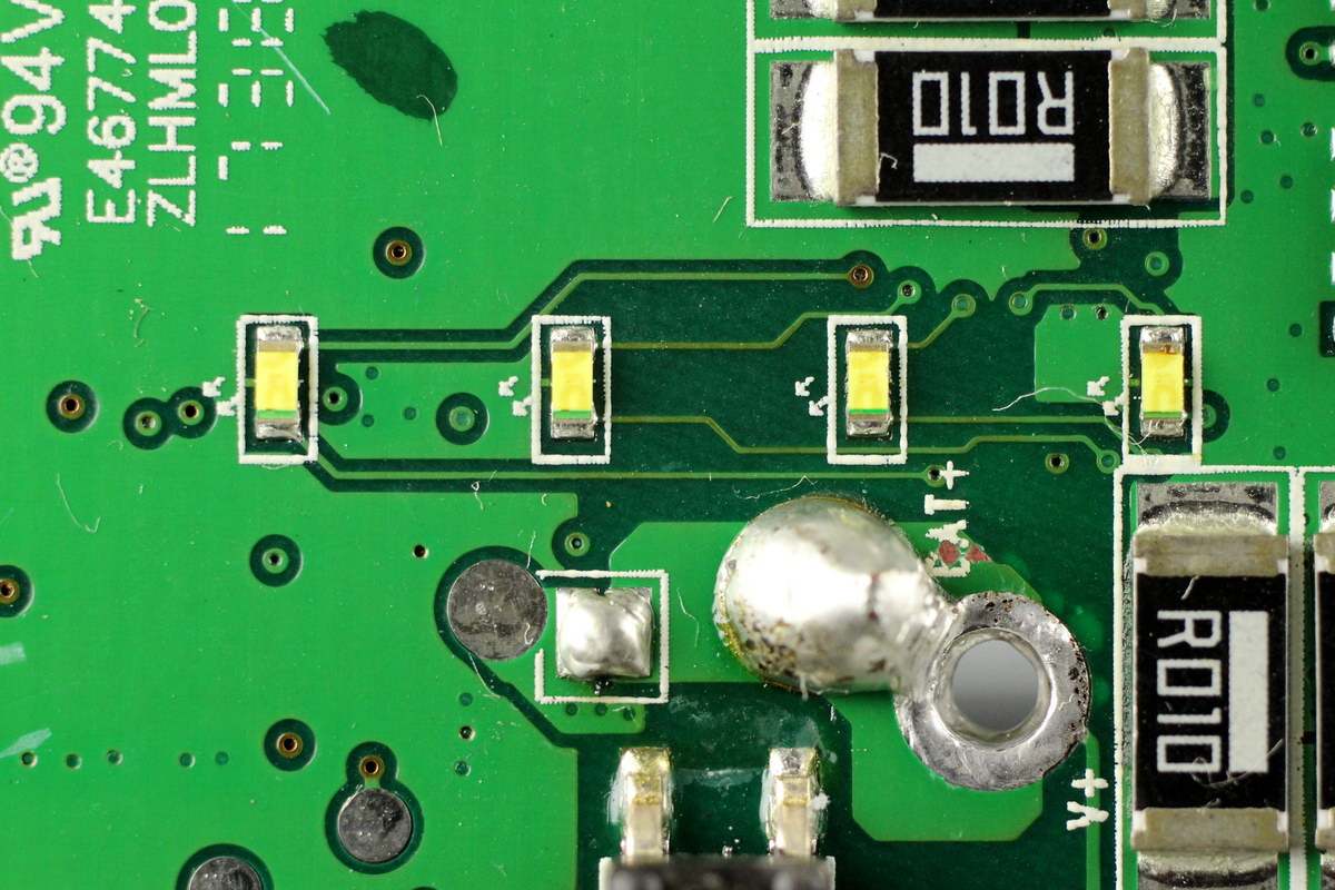 LED电量指示灯特写。
