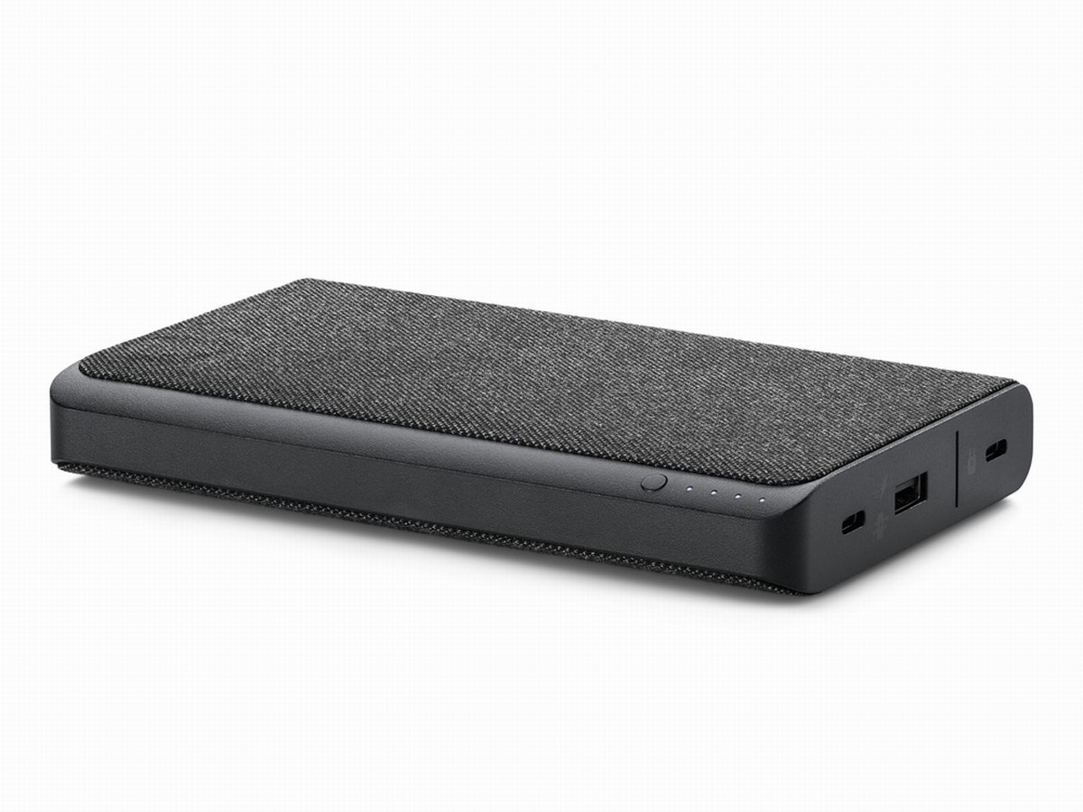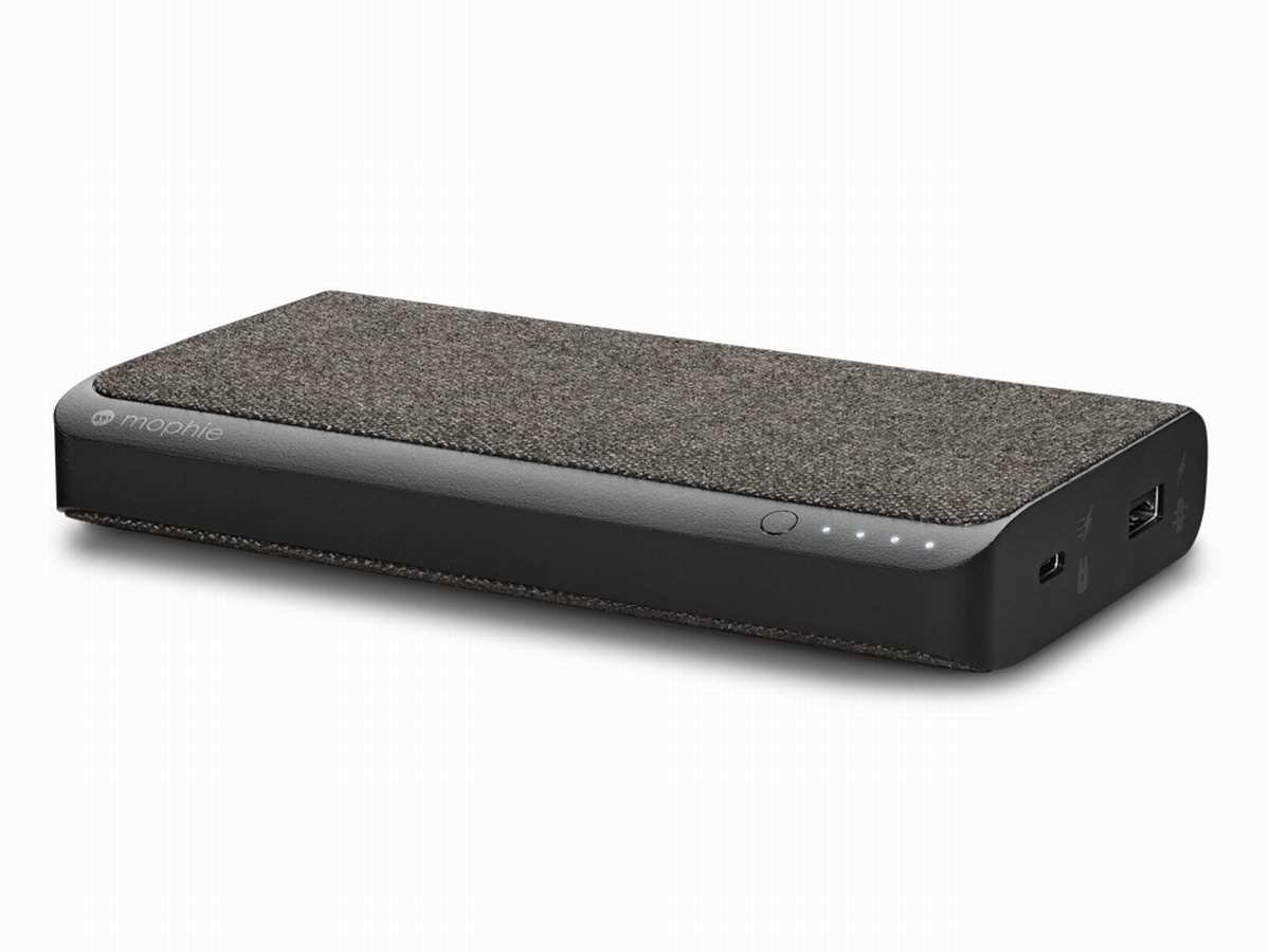 mophie powerstation pro 电池是一个拥有19500mAh电池容量的移动电源,表面采用布艺材质制作拥有不错的手感,四色电量指示灯。接口方面拥有一个USB-C双向快充接口,一个USB-A输出接口,其中USB-C支持30W PD双向快充,可以对iPhone、iPad、Macbook等设备提供电力支持,支持边充边放功能,包装内配套CtoC与AtoC数据线方便到手即用。售价为1060元人民币。