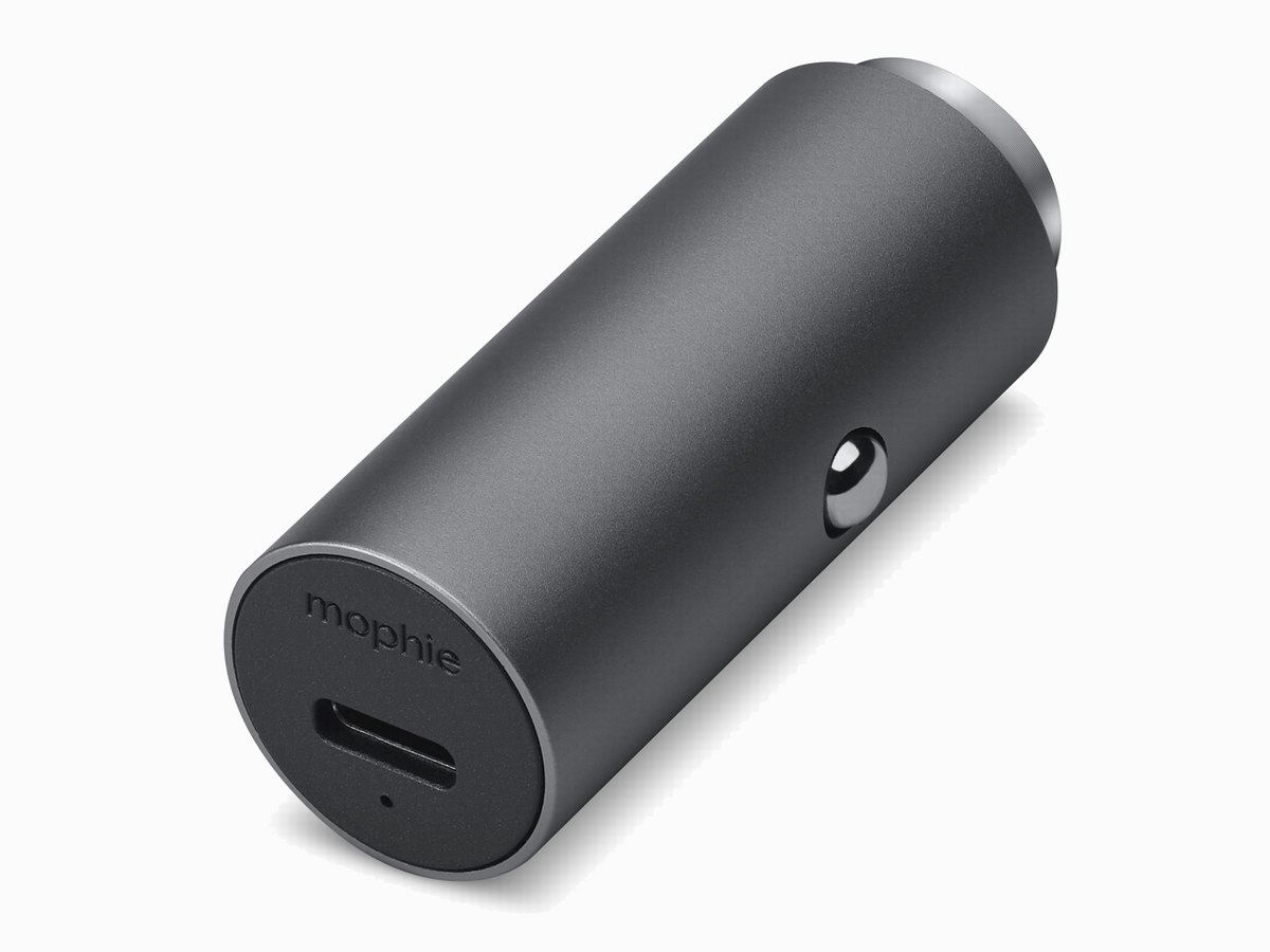 mophie USB-C 车载充电器采用优质阳极氧化铝金属制成,圆柱形直筒式设计小巧精致,精致外观和极简设计,适合任何汽车内饰风格,输出面板上带有一个电源指示灯,便于判断当前工作状态,USB-C输出接口支持18W PD快充输出,可以对iPhone进行快速充电。售价为198元人民币。