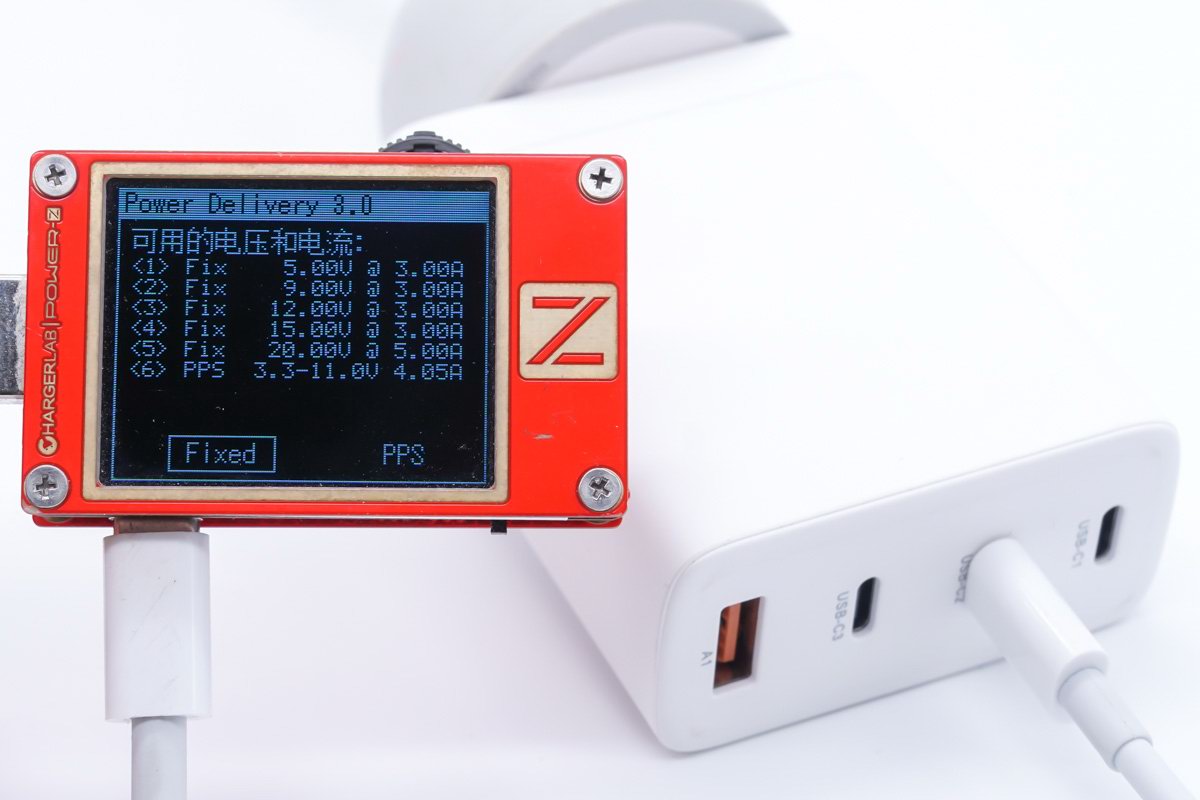 使用POWER-Z KT002 USB测试仪读取USB-C2 PDO报文,支持5V3A / 9V3A / 12V3A / 15V3A / 20V5A五个固定电压输出档,另还包含3.3-11V4.05A一组PPS电压子集。