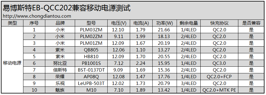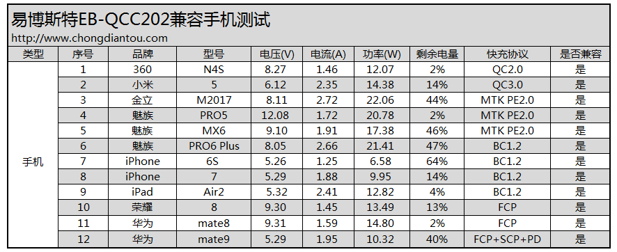 对主流手机的测试中,QC3.0、mtk、bc1.2以及FCP均能够支持。