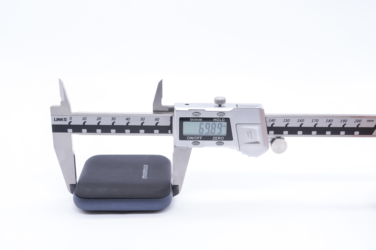 三围方面,使用卡尺实测充电宝的宽度约为69.78mm。