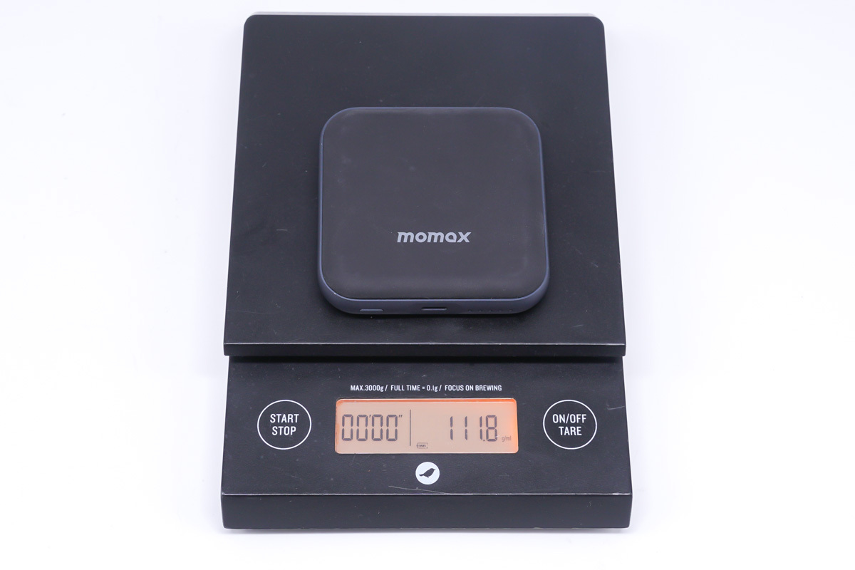 先上个对比图,上图中白色的部分是苹果30W PD充电器,下面就是今天要介绍的来自MOMAX摩米士,型号为IP102MFi的磁吸无线充电宝,下面进入正题部分。