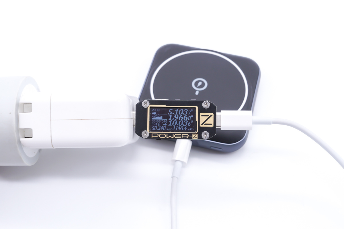 当然,充电宝支持边充边放,这样如果在室内固定地点的话,就可以将充电宝当做无线充电器使用了,一物两用。