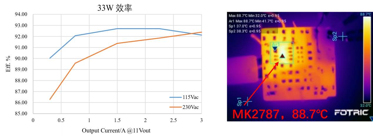 高效率,33W满载效率高达92.4%,温升仅53.7℃(25℃环温测试):