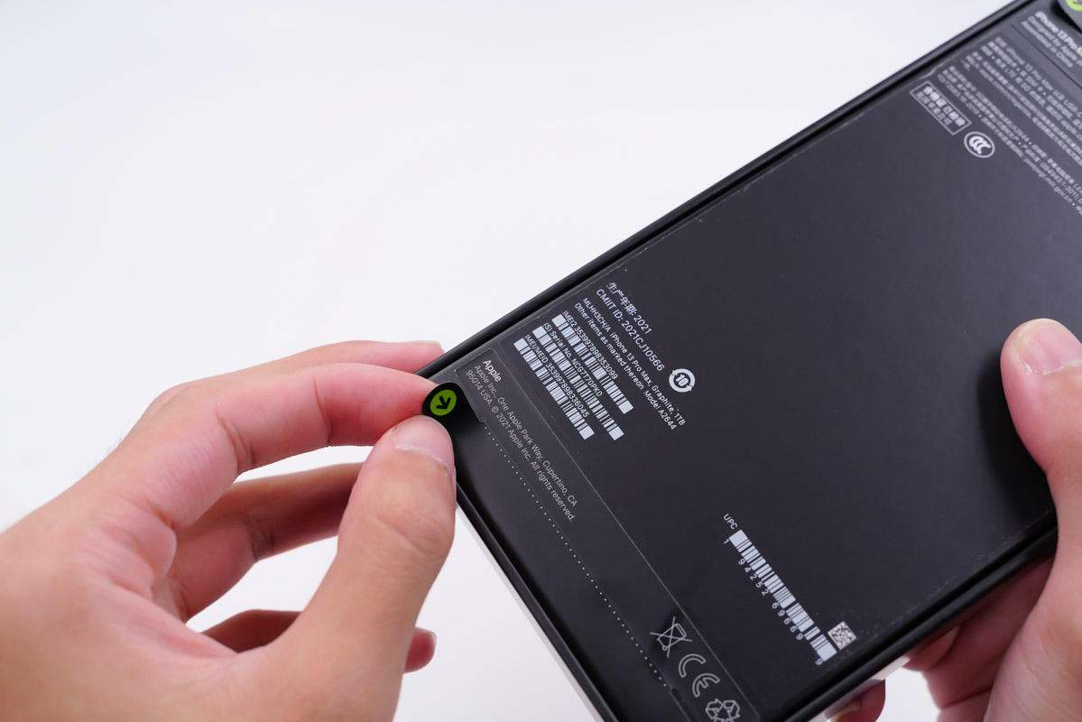 并且此次iPhone 13全系的包装盒均取消了表面的塑料膜,改用上下两条贴纸封装。