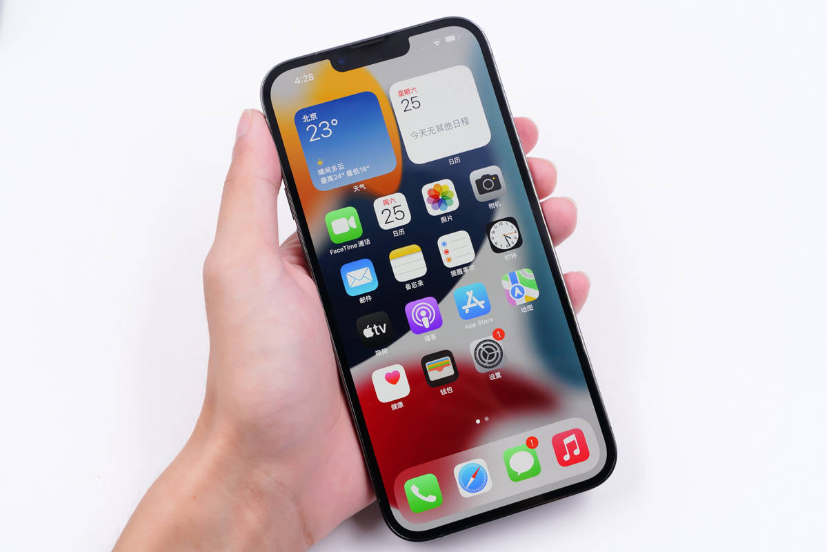 开机进入主界面,此次主要是针对刘海的位置进行了更新,相较于iPhone 12以及前面的全面屏iPhone刘海的位置小了20% 。