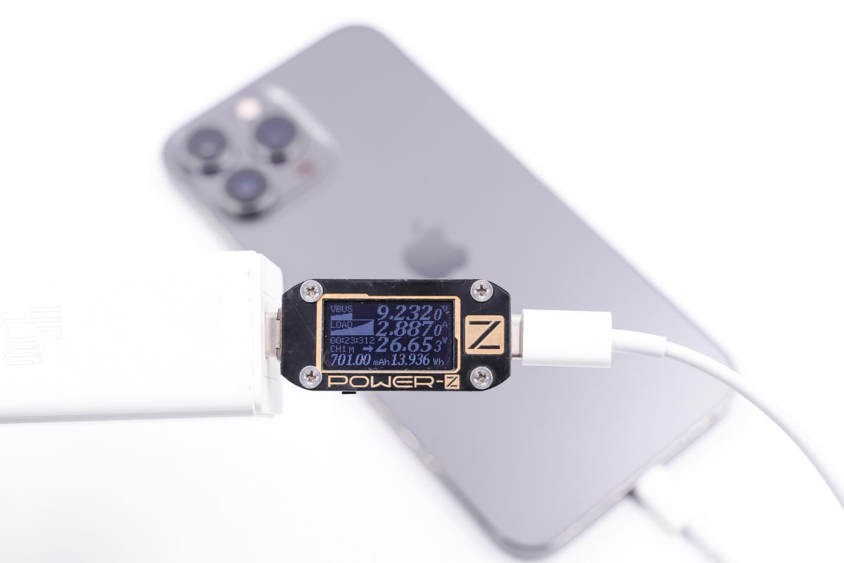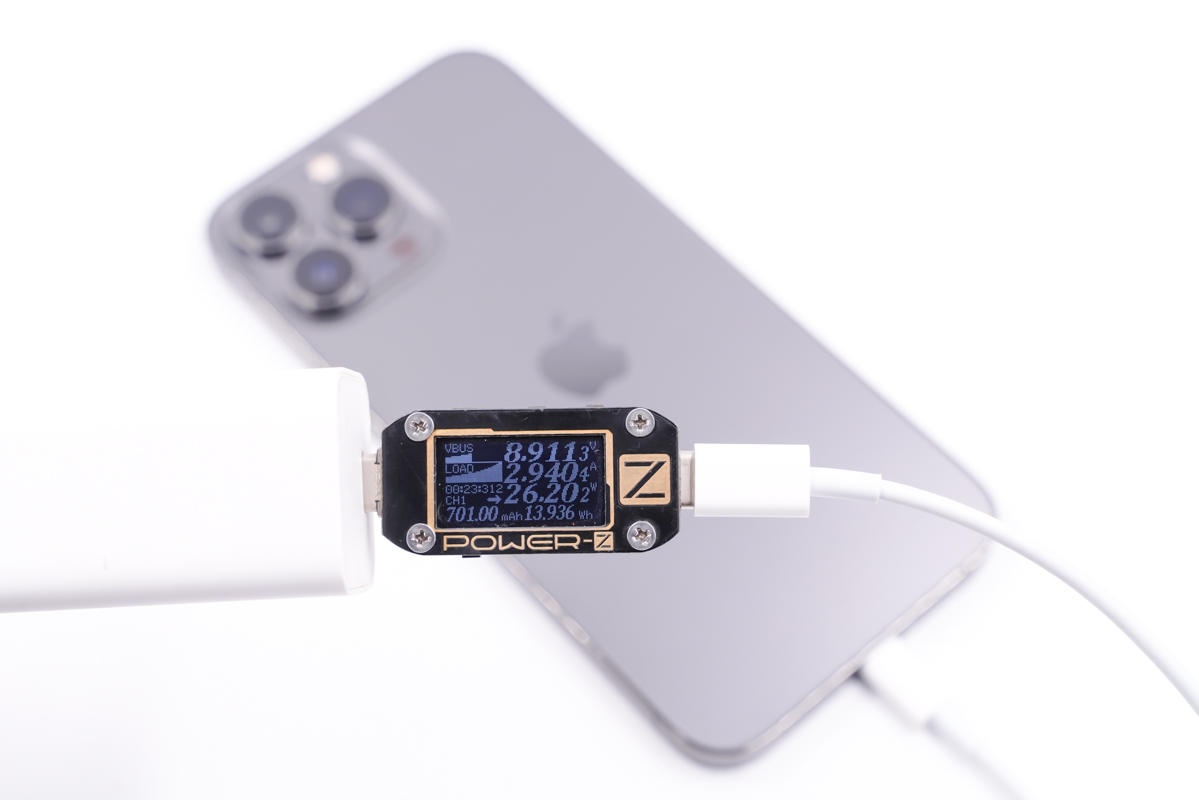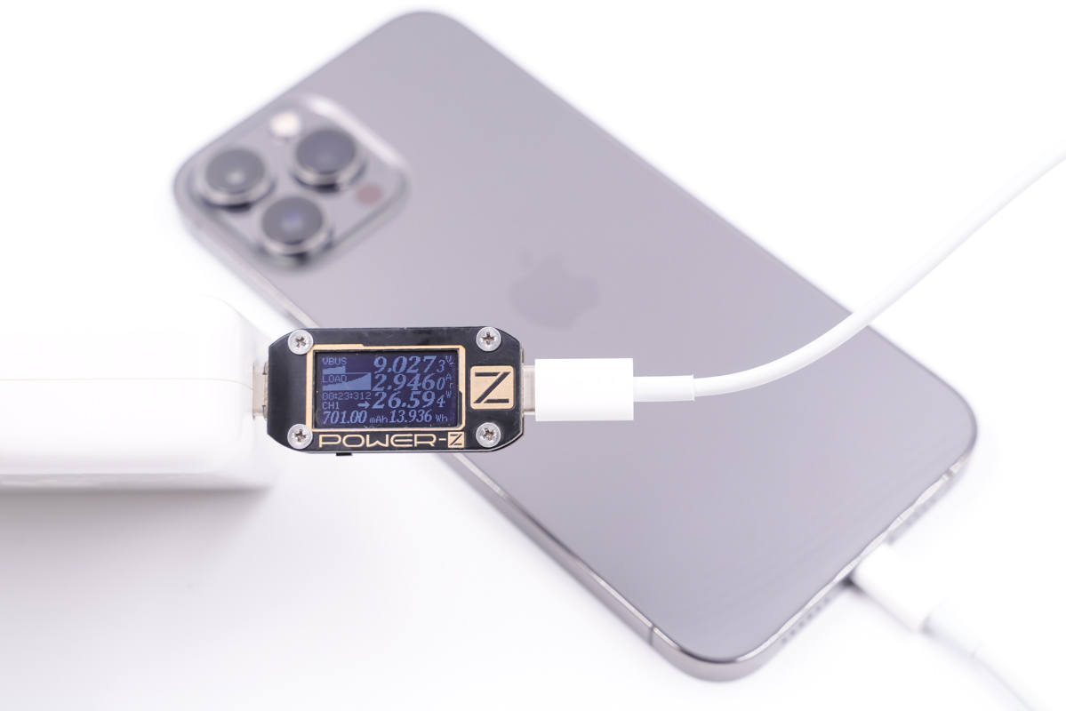 最后使用苹果的96W PD充电器为iPhone 13 Pro Max充电,功率为9.05V 2.94A 26.70W。