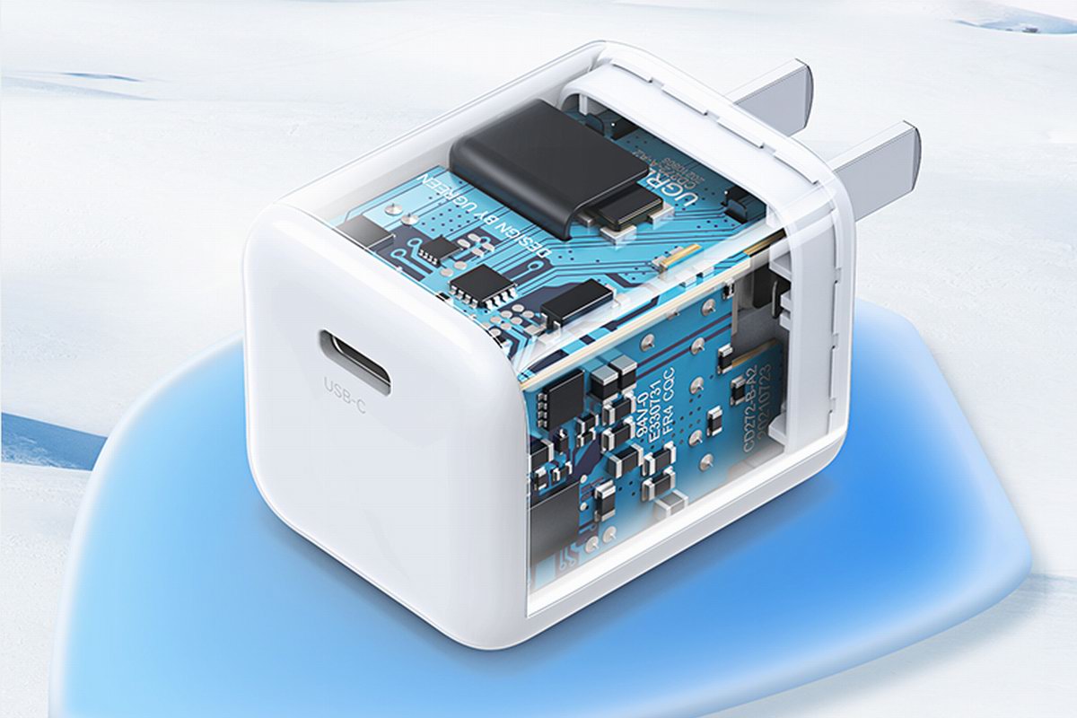 绿联30W氮化镓迷你充采用了氮化镓功率器件制作,拥有高频高效特性,减少充电器温升发热,再配合立体堆叠设计,内部器件进行三维排布缩减体积,最终让体积控制在39.8mm X 32.7mm X 31.7mm,按照最大输出功率33W计算,功率密度达到0.8W/cm³,远小于同功率传统充电器。