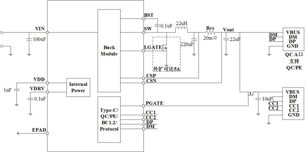 3.单电感支持双口输出,兼容普通A口和Type-C口