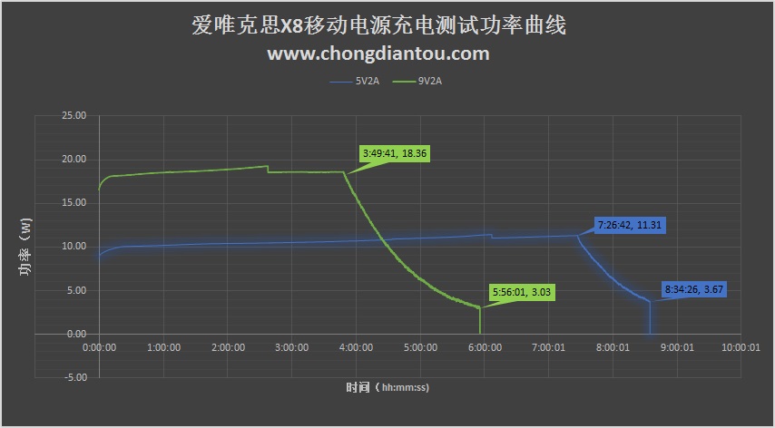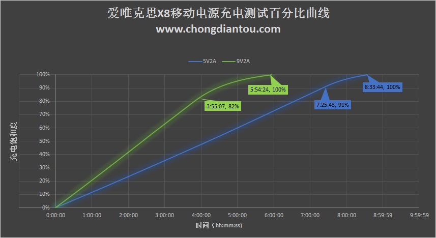 使用两款不同输出功率的电源适配器对其进行充电测试,5V2A要耗费8.5小时才能解决的问题,9V2A充电头6个小时就OK了,节约2.5个小时。