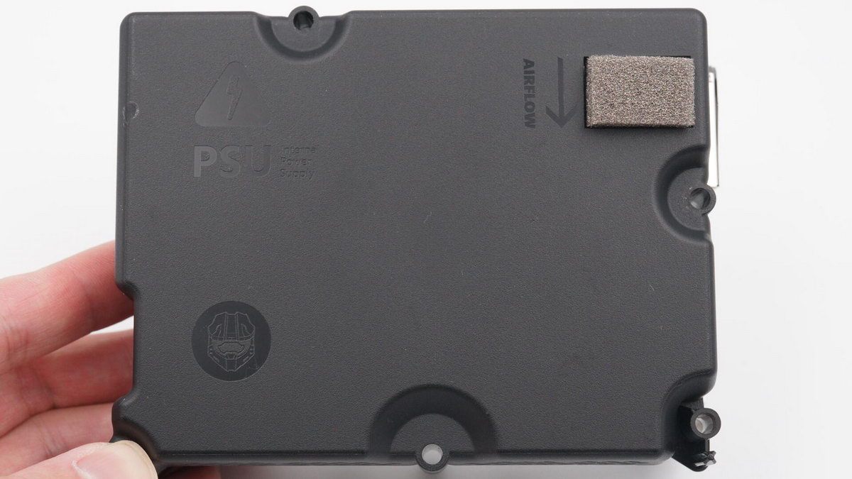 Xbox Series S的电源外壳采用工程塑料,整体造型相对更有几何规则,机身扁平。