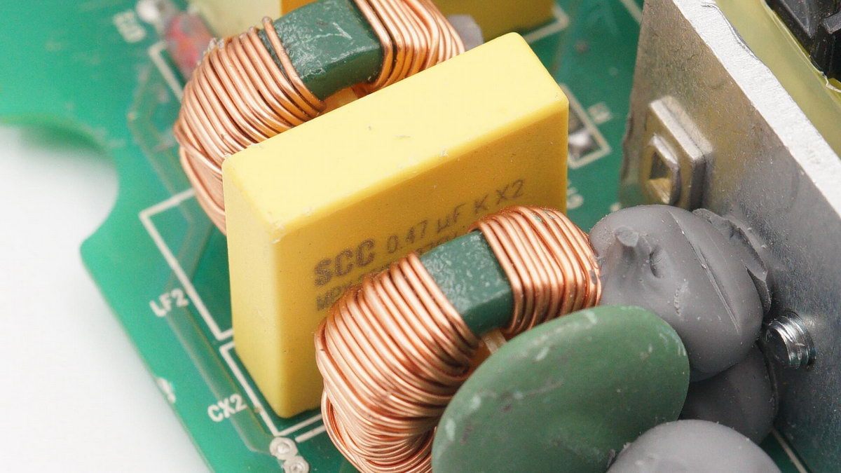 安规X电容容量1.0μF,旁边共模电感双线绕制,用于滤除EMI干扰。