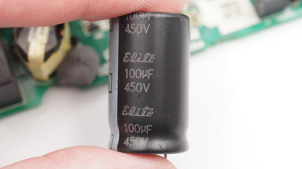 高压滤波电解电容来自金山,规格为450V 100μF。