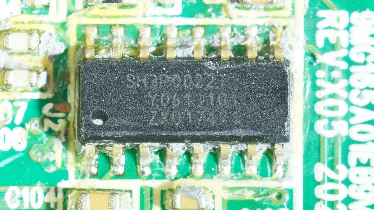 LLC开关电源主控芯片特写,丝印SH3P0022T,采用SO16封装。