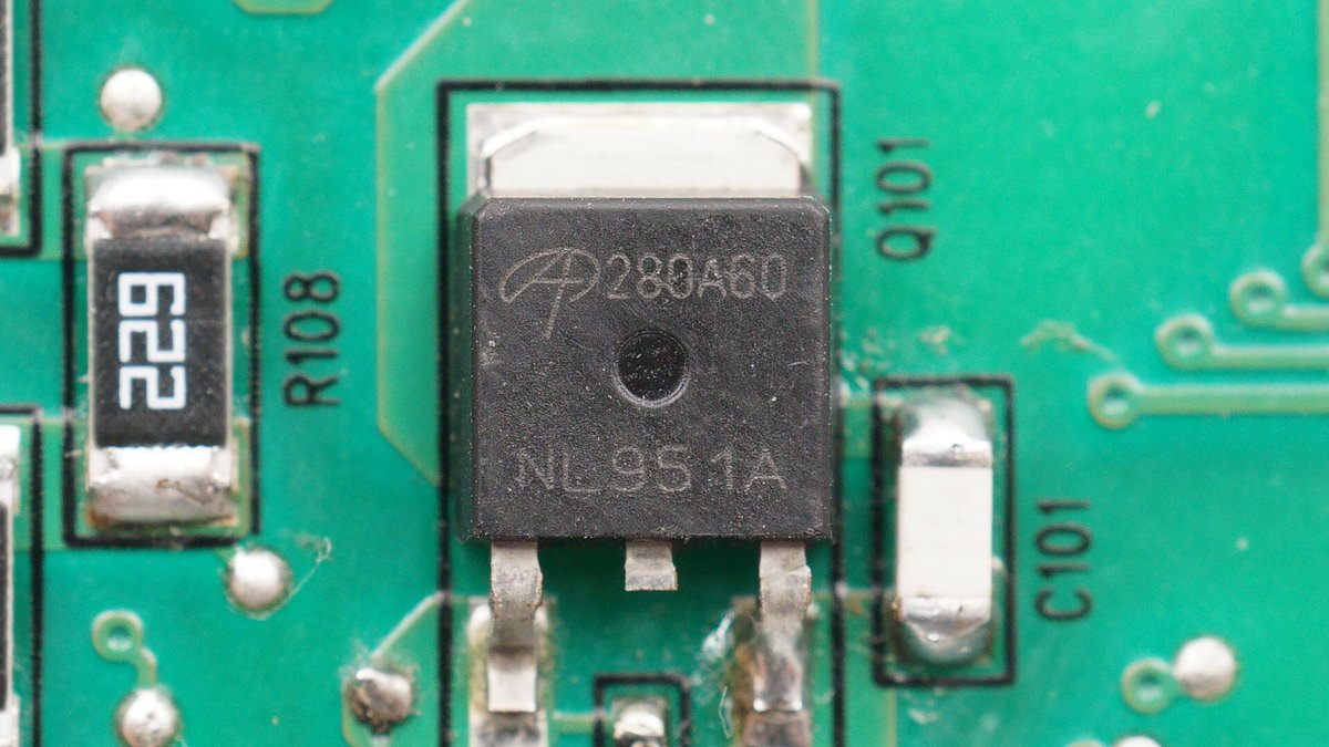 LLC半桥开关管采用AOS AOD280A60,耐压700V,导阻小于0.28Ω,TO-252封装。