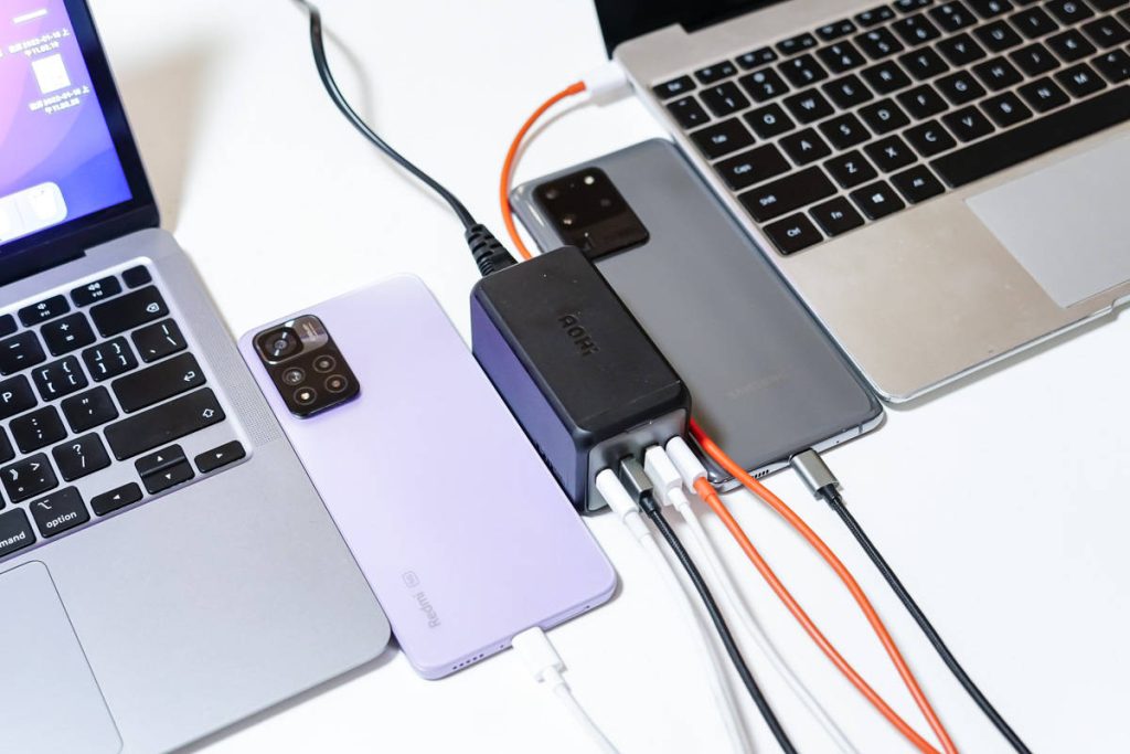 协议方面,实测支持 Apple2.4A、QC2.0、QC3.0、QC4+、AFC、FCP、PD3.0和PPS等充电协议,USB-C 双口支持盲插100W,USB-A 接口则最大18W,同时兼顾了新老设备的兼容性。多口使用时功率分配才是决定体验的重中之重,这款充电器支持多台设备同时快充,实测功率分配智能,一如 MAGCUBE 系列的其他充电器。
