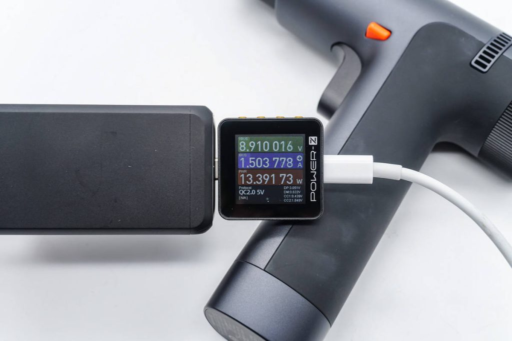 为米家手钻充电,功率约为 8.91V 1.5A 13.39W。