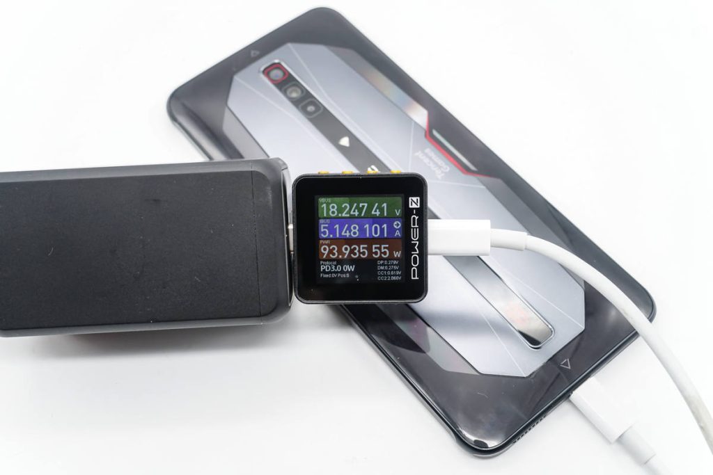 为红魔6 Pro 充电,功率约为 18.24V 5.14A 93.93W。