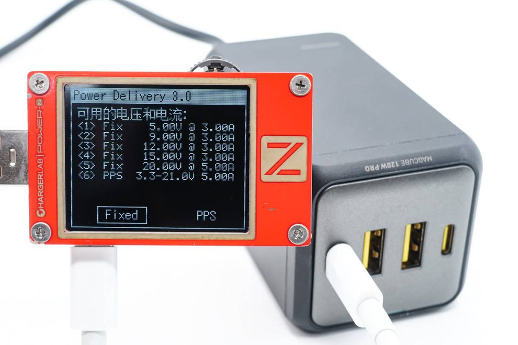协议方面,使用 ChargerLAB 的 POWER-Z KT002 读取 USB-C 接口的快充协议,实测支持 Apple2.4A、QC2.0、QC3.0、QC4+、PD3.0和PPS等充电协议。