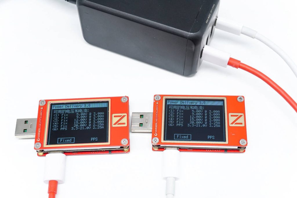 而双口同时使用时,PDO有所改变,左侧 USB-C 接口最大电压档位 20V2.25A,右侧 USB-C 接口最大电压档位 20V3.25A。