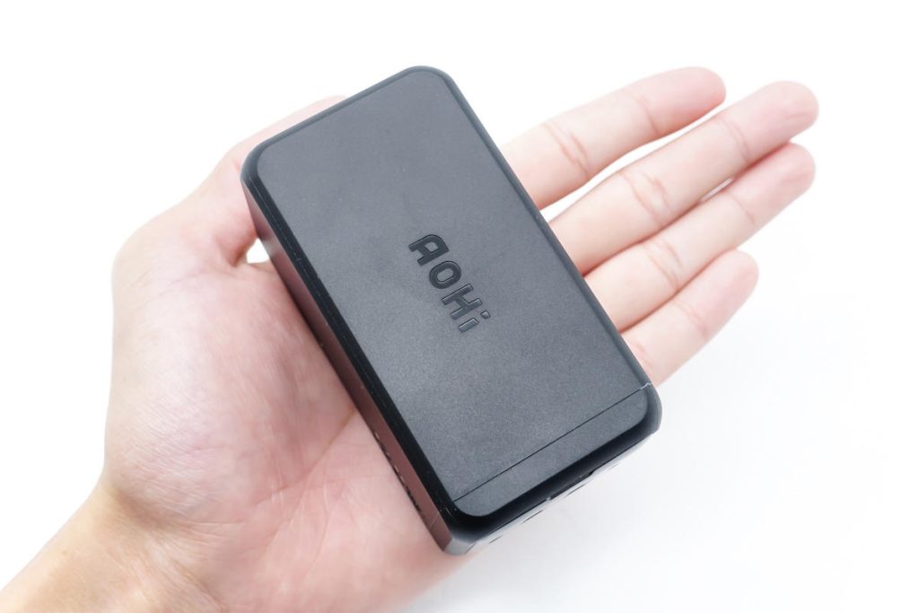 AOHi 120W氮化镓桌面充电器本体为磨砂设计,不那么圆润的边角过渡,有种说不出的硬朗感。